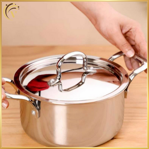 Triply Sauce Pan with Lid | PVD Gold Handles