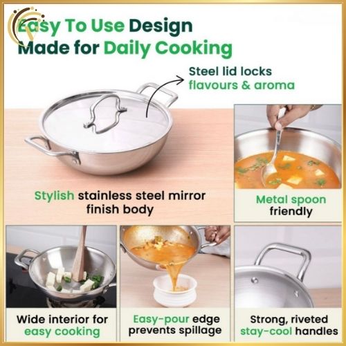🍛 Spacious & deep – ideal for curries, biryanis, and frying