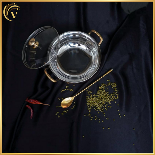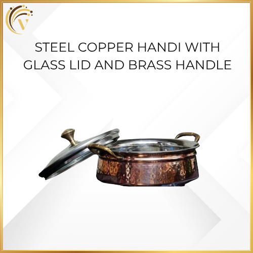 Vansh Steel Copper Handi with Glass Lid & Brass Handle