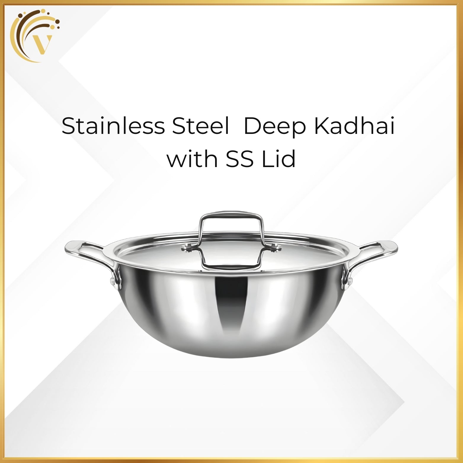 Discover the perfect balance of depth, durability, and design with the Vansh Deep Kadhai. Ideal for deep frying, sautéing, or preparing rich curries and gravies, this kadhai is crafted from premium stainless steel for long-lasting performance and even heat distribution. The spacious design ensures mess-free cooking, while the sturdy handles offer a comfortable grip. Complete with a stainless steel lid, the Vansh Deep Kadhai locks in flavor and moisture, making every dish more delicious. Compatible with all heat sources including gas and induction, it's a must-have for every modern kitchen