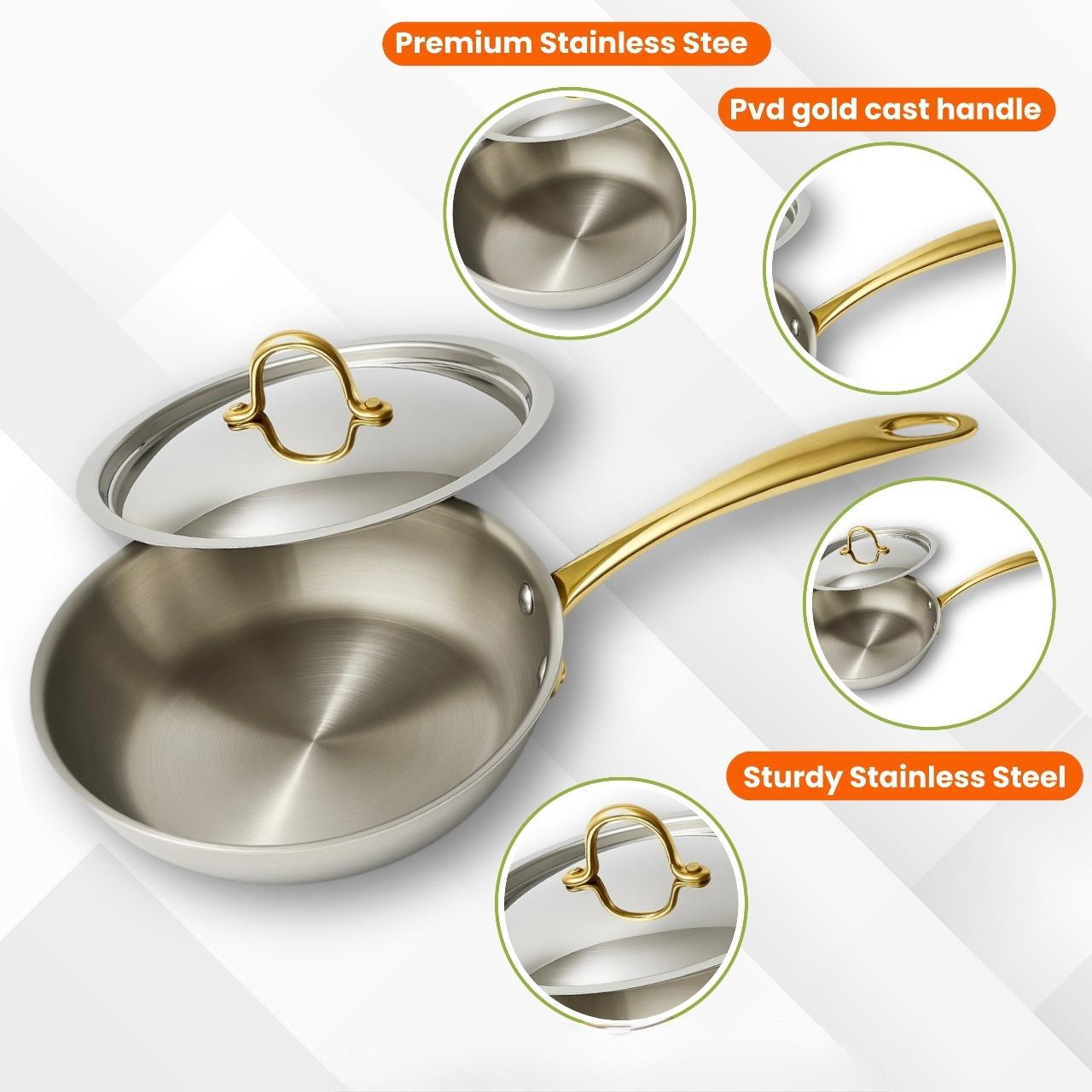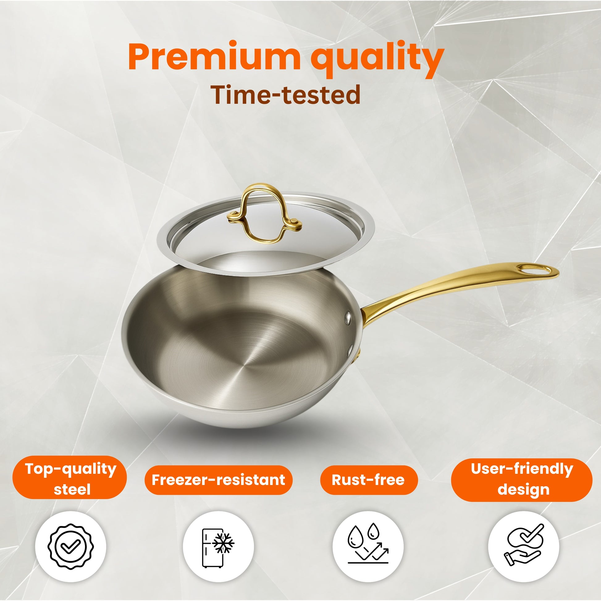 Vansh Fry Pan with Lid – PVD Gold Handles