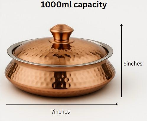 Add a statement of luxury and charm to your table with the Rose Gold Hammered Serving Bowl. Featuring a stunning rose gold finish and a beautifully handcrafted hammered texture, this bowl is designed to impress. Made from premium stainless steel with a food-safe coating, it’s perfect for serving everything from festive sweets to rich curries and snacks. The elegant shine and modern aesthetic make it ideal for both everyday use and special occasions. Durable, stylish, and easy to clean—the Vansh Rose Gold Hammered Bowl is where function meets finesse.