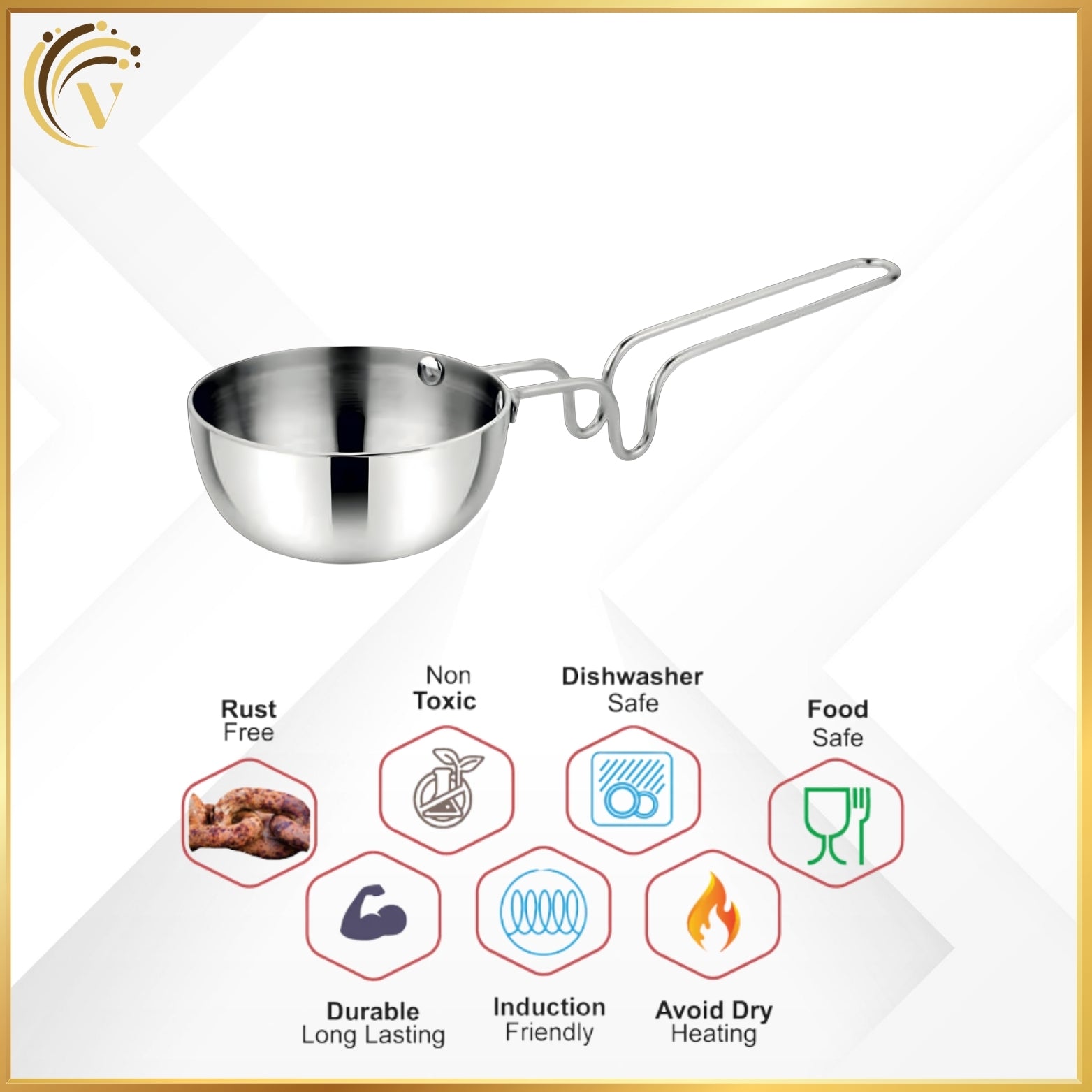 Enhance the flavor of your dishes with the Vansh Tadka Pan, specially designed for tempering spices to perfection. Crafted from high-quality stainless steel , this pan ensures quick and even heating for efficient cooking. Its compact size and sturdy handle make it easy to use and pour, while the heat-resistant grip ensures safety. Whether it’s for dal, curries, or chutneys, the Vansh Tadka Pan is an essential tool to bring that authentic taste and aroma to your everyday meals.